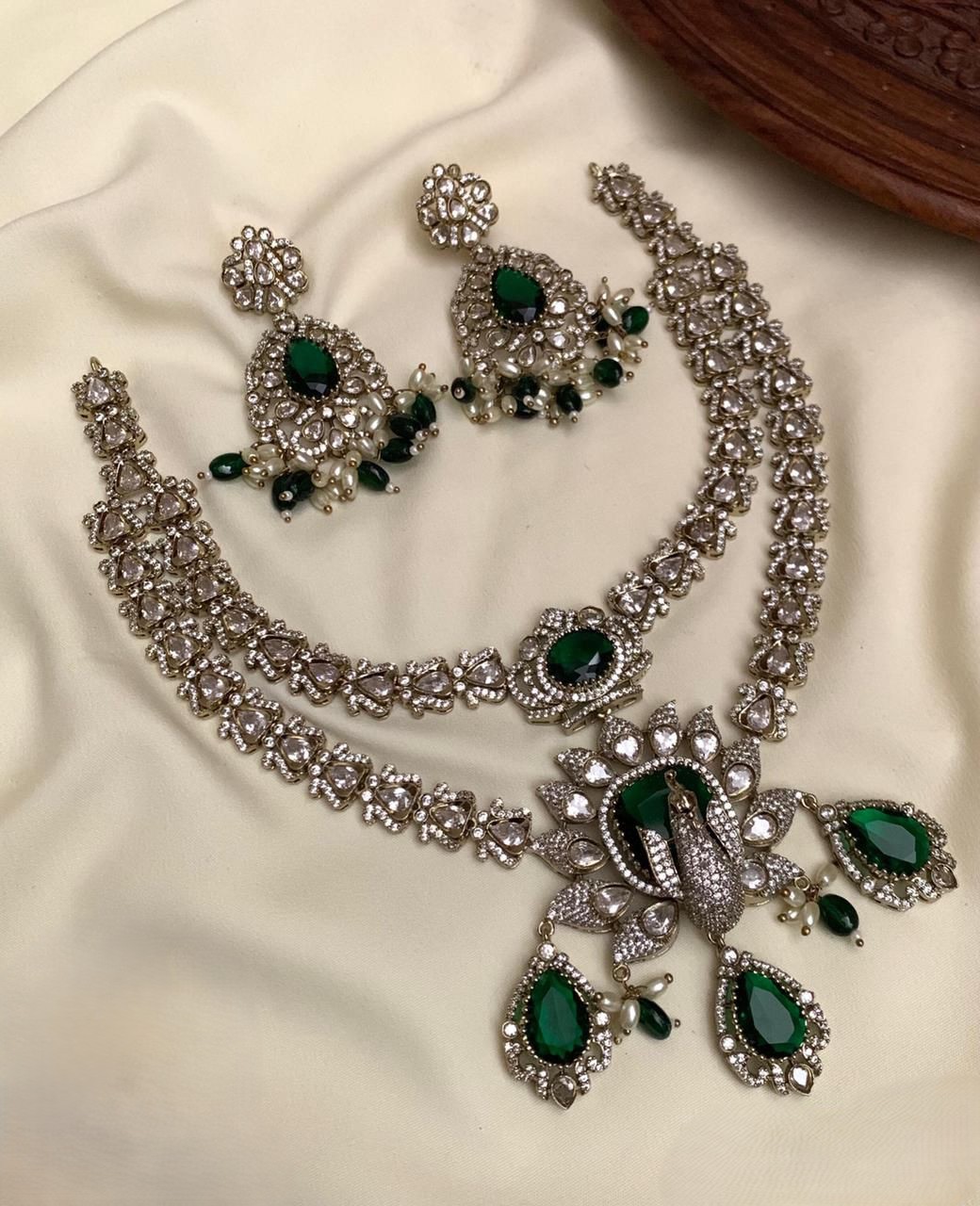 Dancing Peacock Green AD Necklace